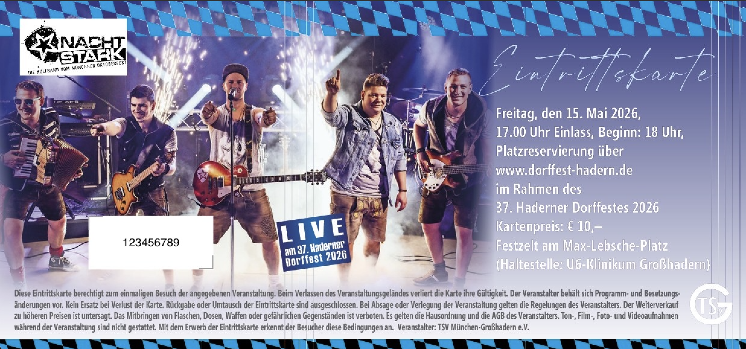 Kommt vorbei und feiert mit uns das Haderner Dorffest vom 08.05. bis 17.05! Freut euch auf tolle Programmpunkte, gemütliche Stunden im Biergarten und jede Menge Spaß für die Kleinen mit Karussell und Trampolin. Und wenn’s mal regnet? Kein Problem – im beheizten Festzelt geht die Party weiter!